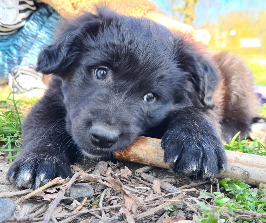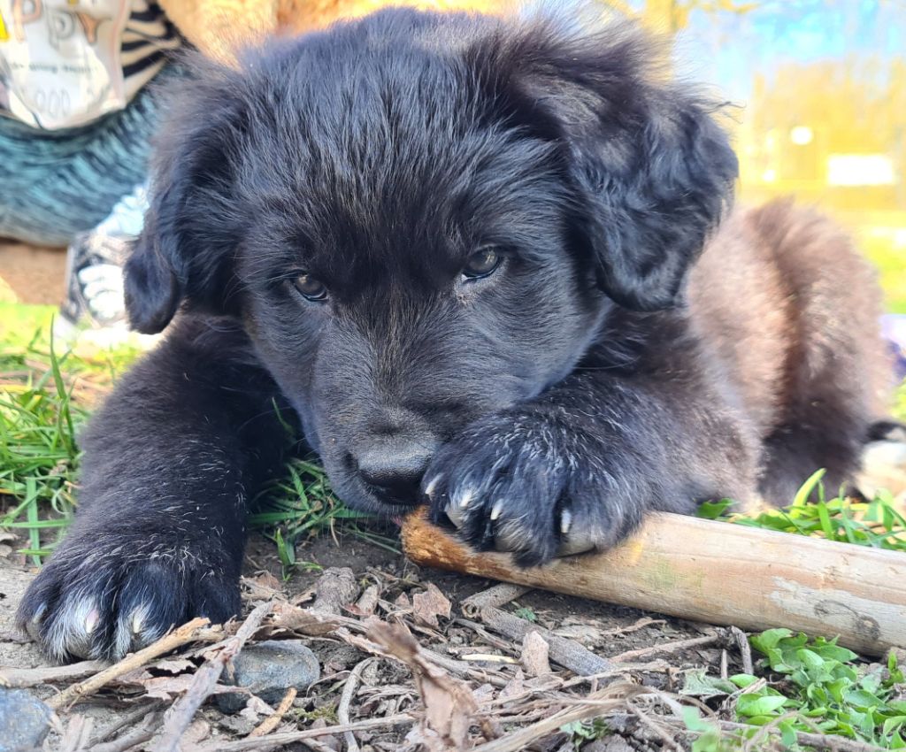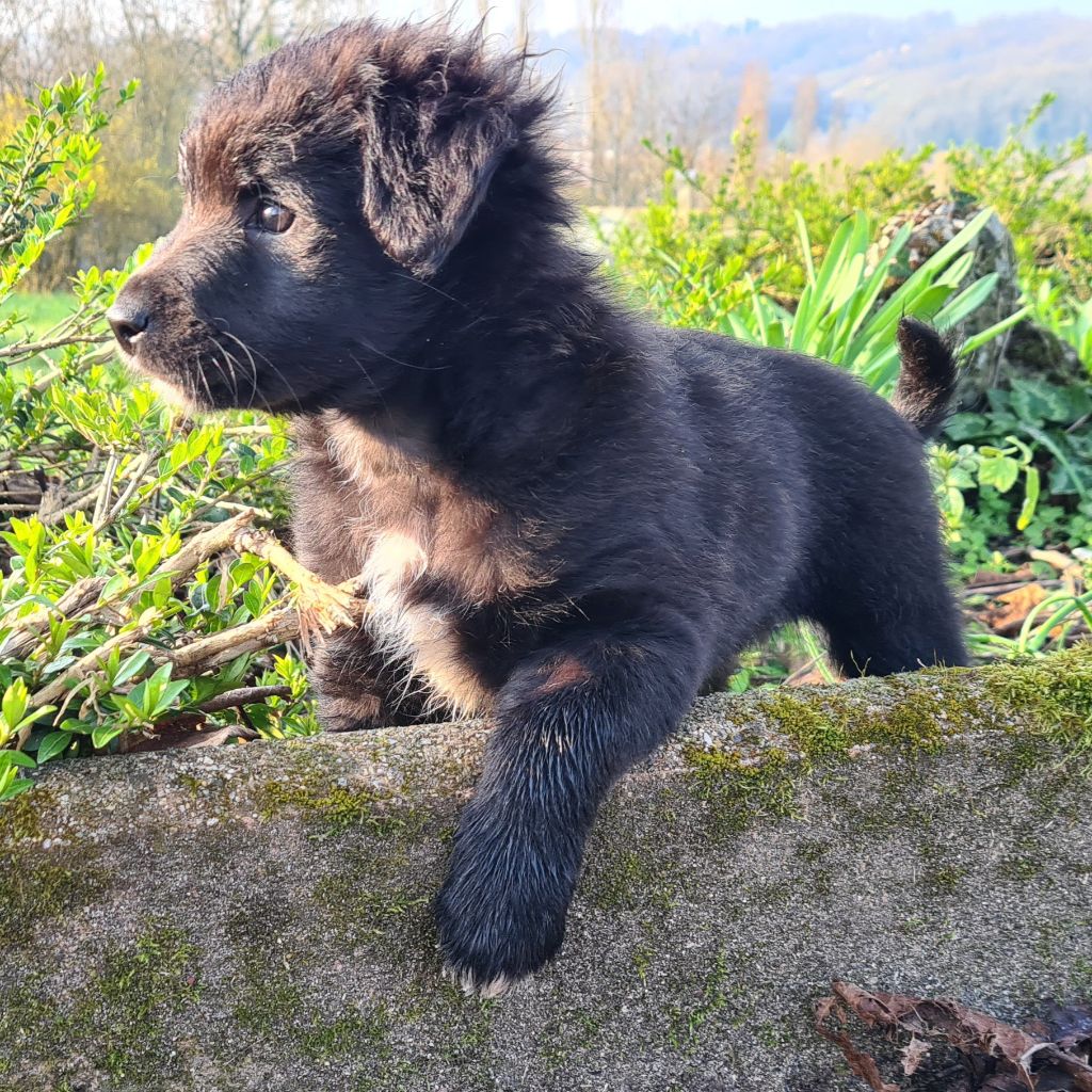 Voltaire des Sources Finnoises est né le 17/01/2024, il est issu de la portée de Perdita du Champ d'Onix et de Nay des Ours Dorés. Il est noir avec une tâche blanche discrète sur le poitrail et sur le bout des pattes. il est LOF.